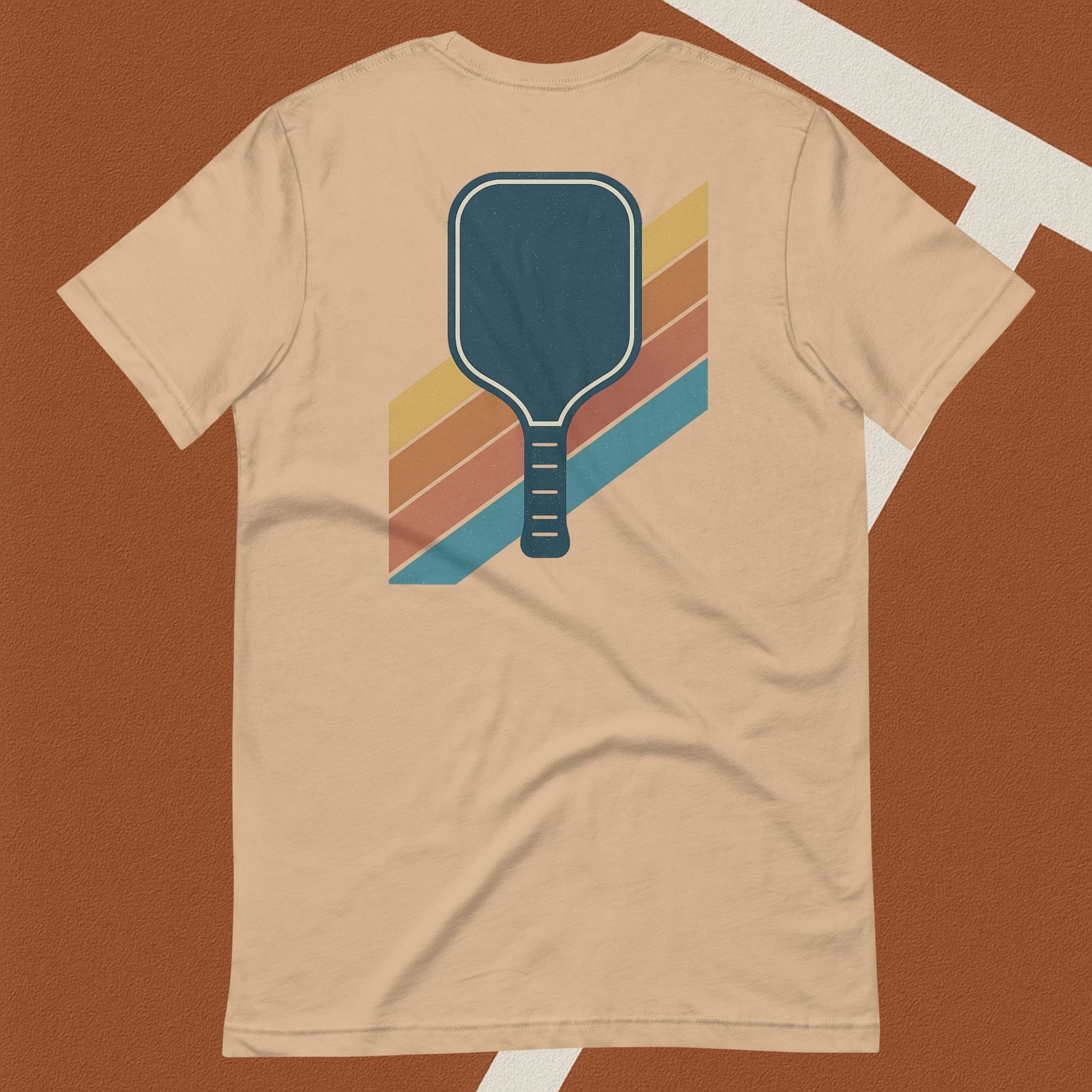 Bring bold 70s flair to the court with the Retro Rally Tee. Featuring a vintage-style pickleball paddle accented by classic retro color stripes, this design is a throwback to the golden age of sport and style. Clean, minimalist, and full of nostalgic energy, it's perfect for players who love the game and the groove.